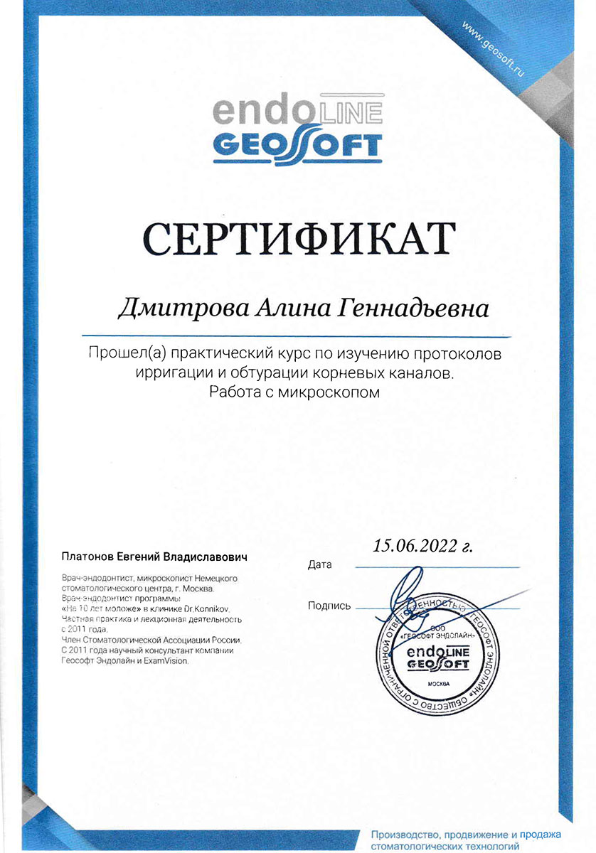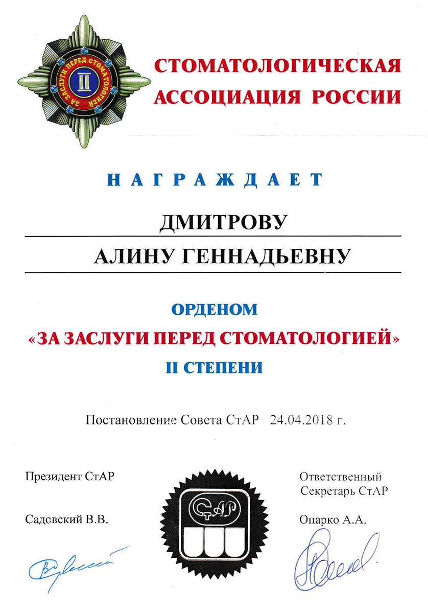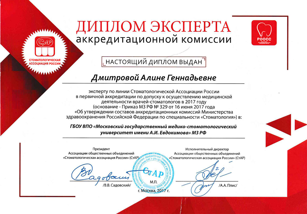 - Член Стоматологической Ассоциации России.