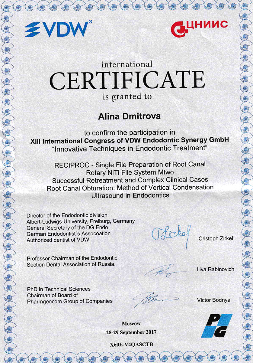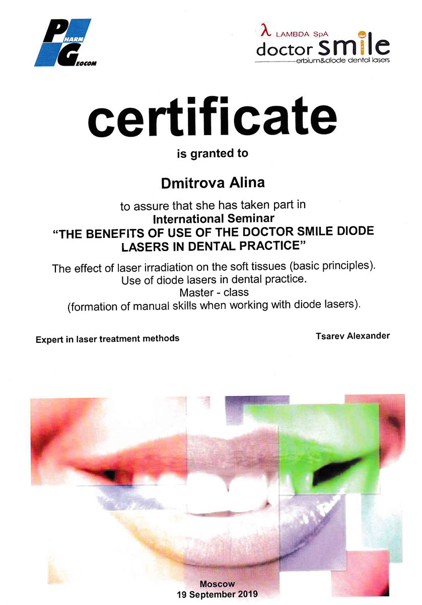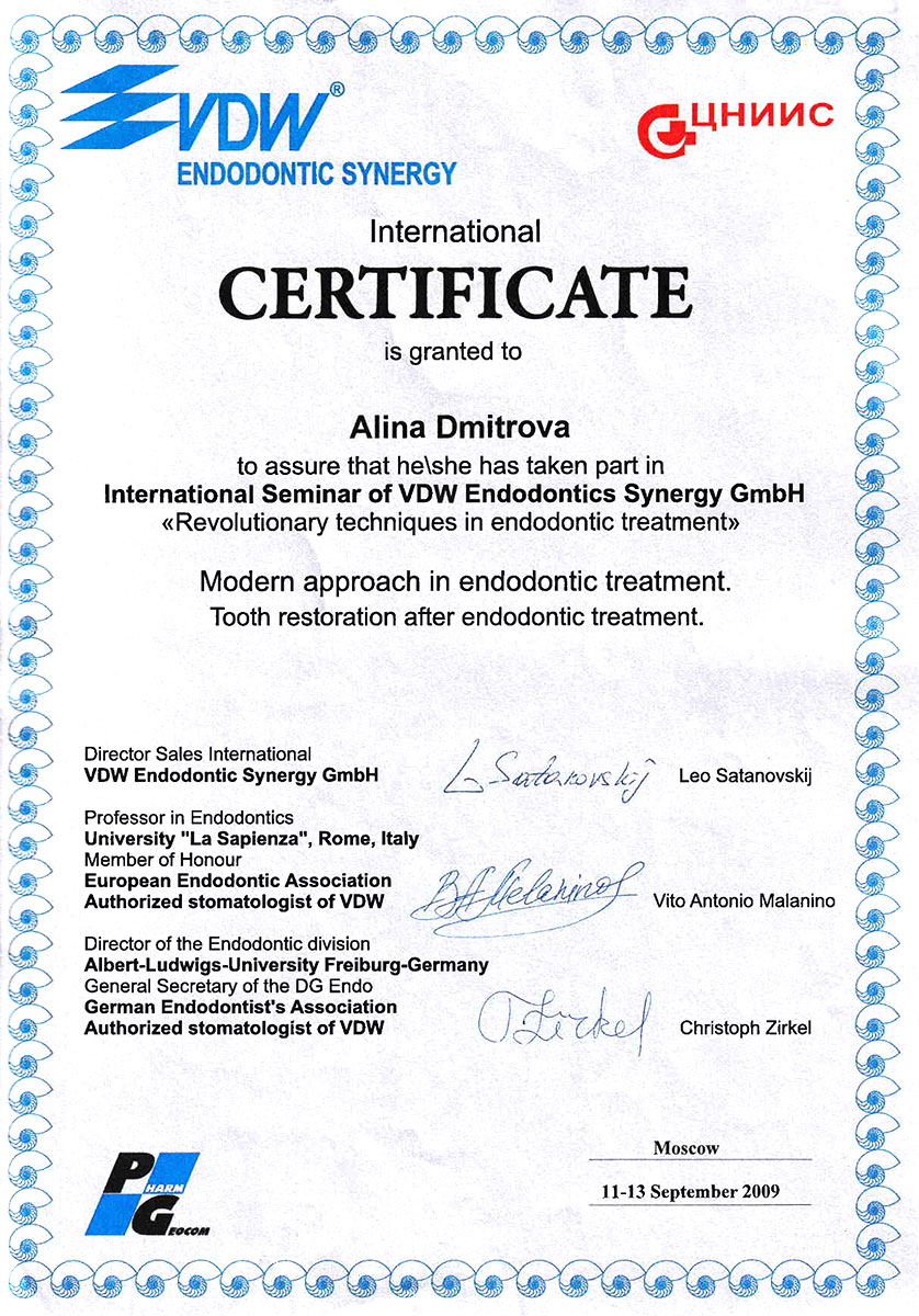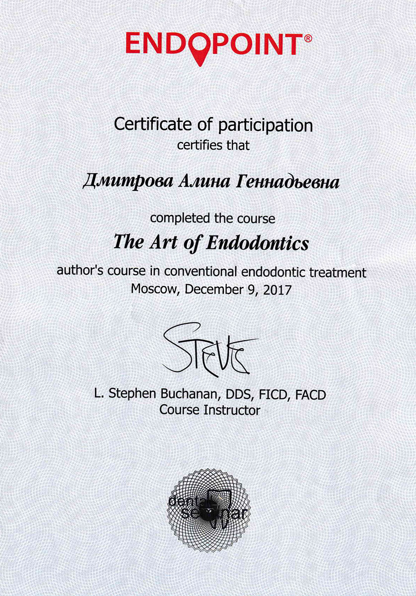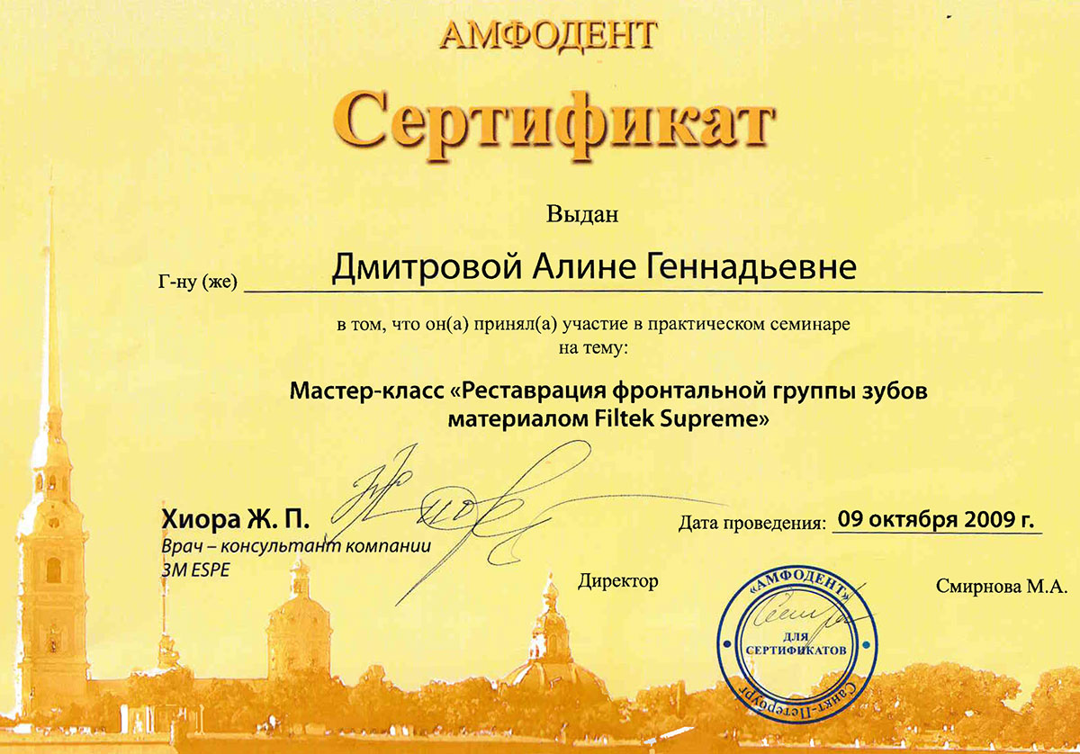 - 2008 г. - «Инновационные технологии в эстетической стоматологии», Kerr, г. Москва.
