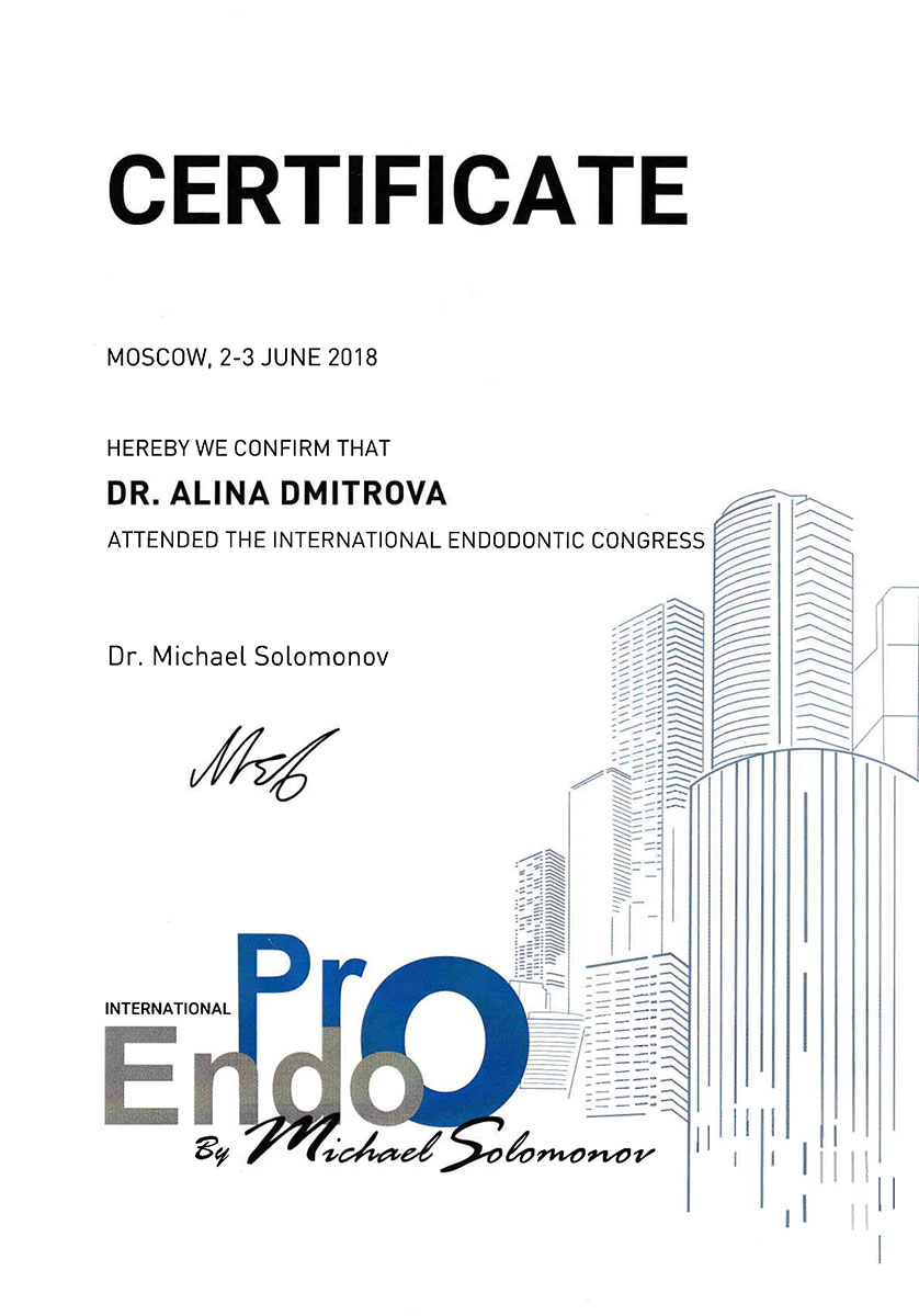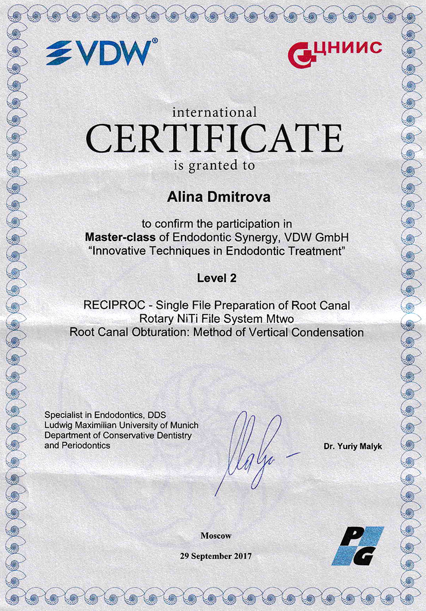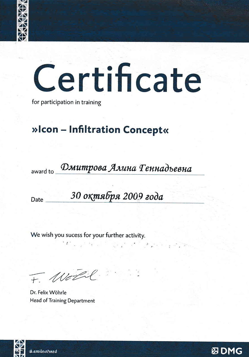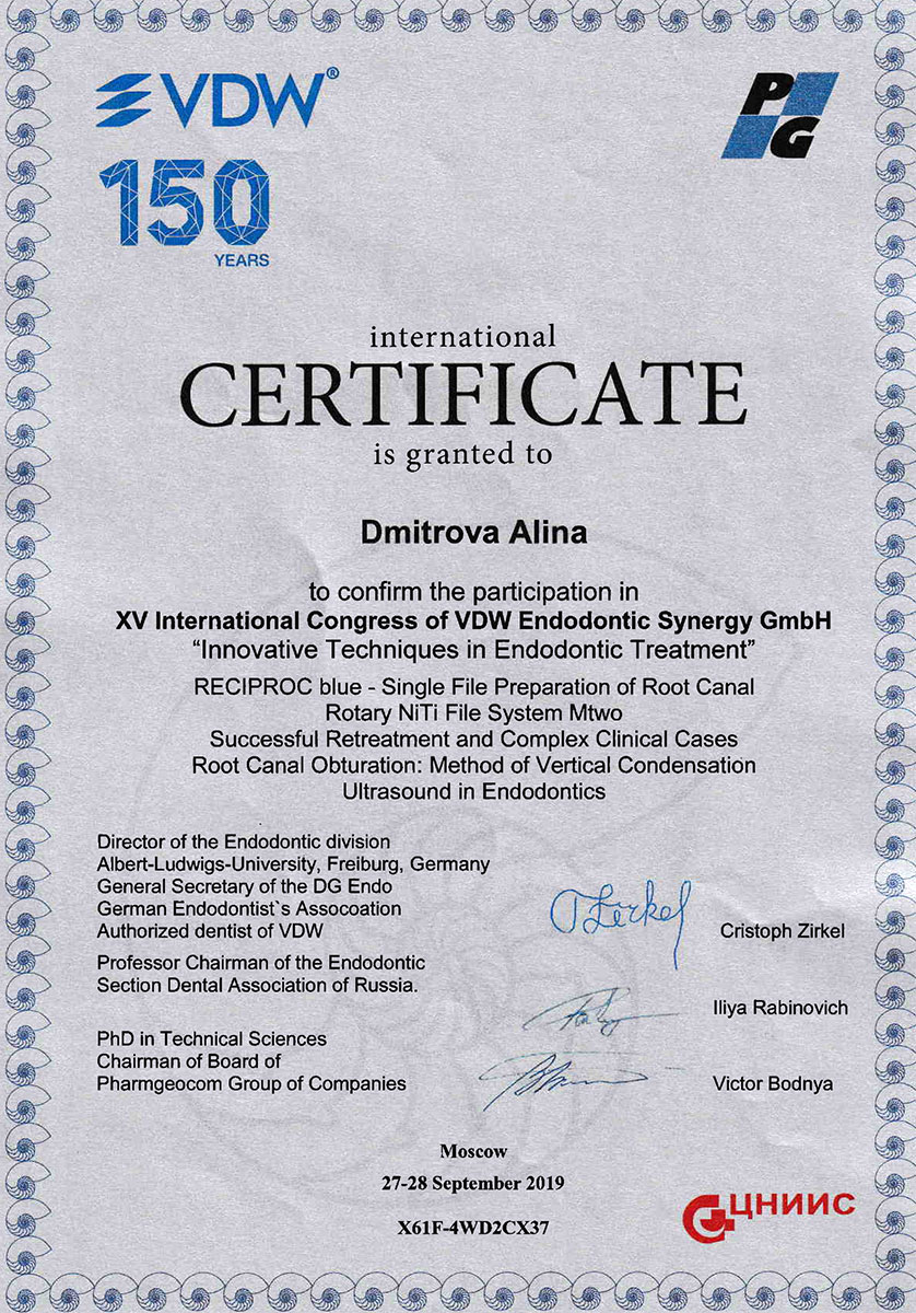- 2008 г. - «Инновационные технологии в эстетической стоматологии», Kerr, г. Москва.