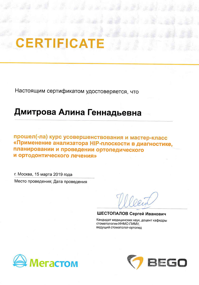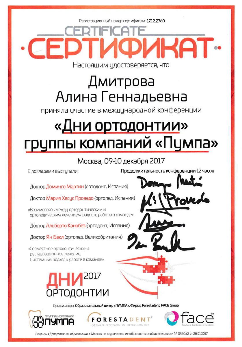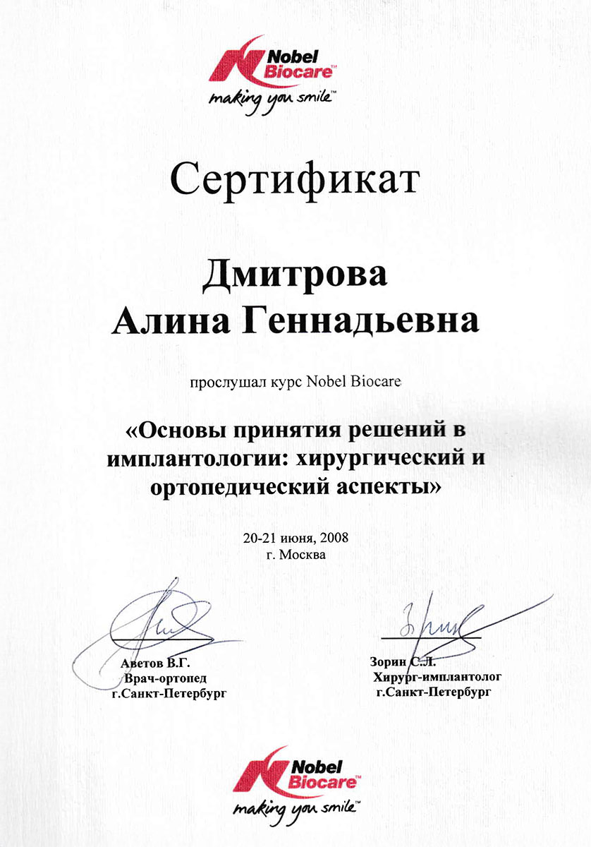 - 2017 г. - «Implant Prosthetics with ASTRATech», University of Gothenburg.