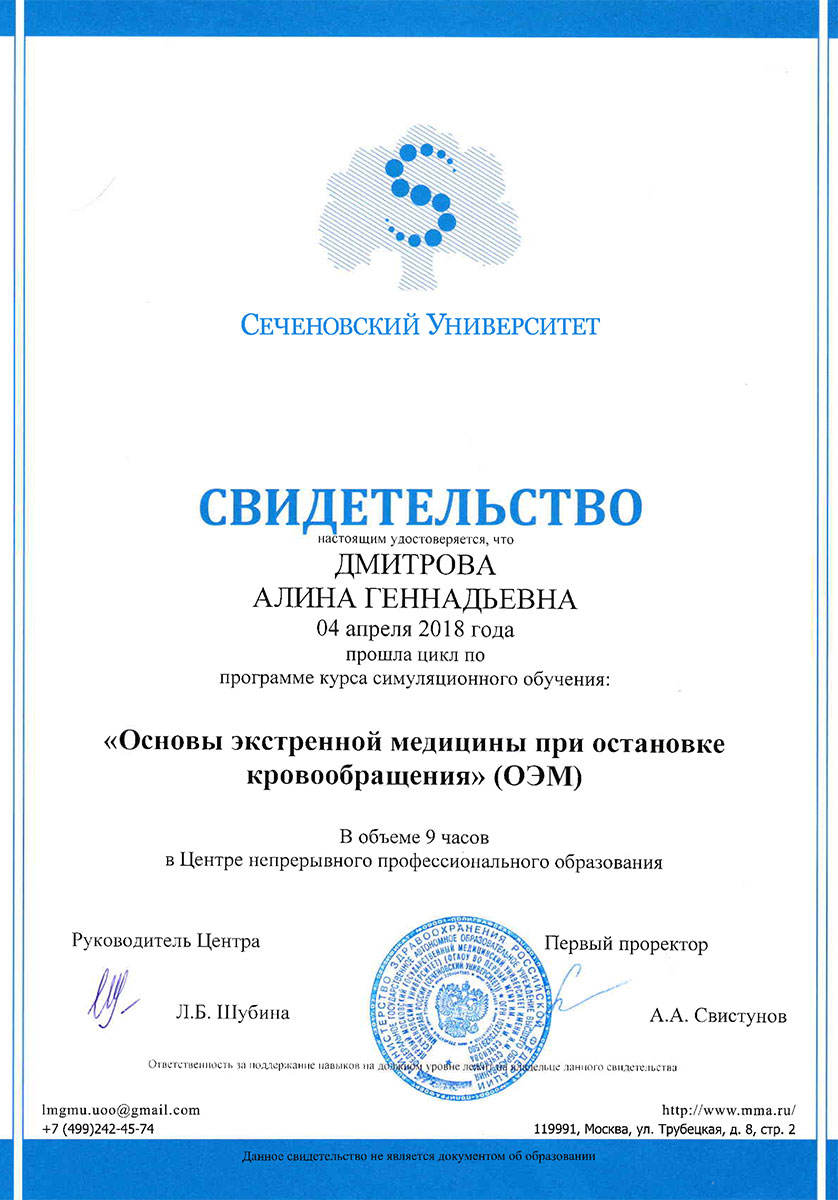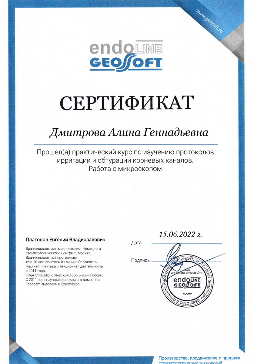 - 2023 г. - «Академия современной детской стоматологии», г. Москва.